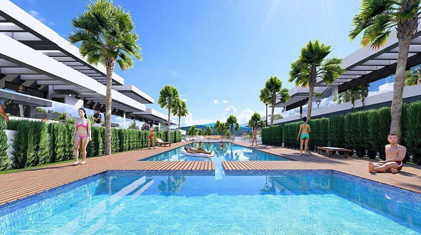 The homes are available in 2 and 3 bedrooms, with two full bathrooms and top-quality finishes. Residents can enjoy common areas such as a communal pool, green spaces, playground, mini-golf, outdoor gym area, and ample parking. Close to golf courses, commercial areas, and a wide range of entertainment, shopping, and dining options. Prices from 283.860€ A real bargain.
